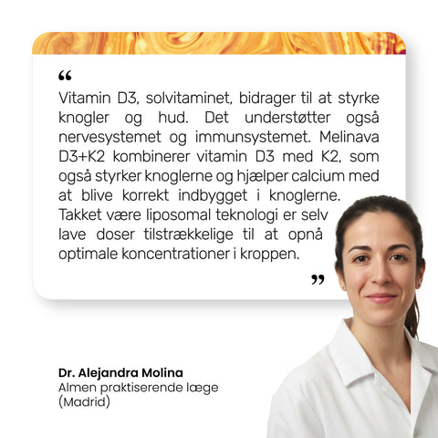 Melinava Vitamin D3+K2 er højt doseret med 26 µg (Vitamin D3) og 78 µg (Vitamin K2) pr. daglig dosis.